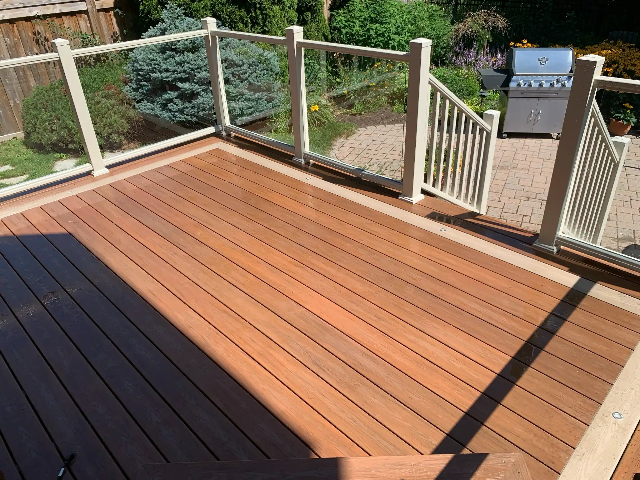 Deck railing serves two critical purposes: safety and design. When a deck is elevated, guardrails are required under the Ontario Building Code. Proper railing prevents falls and ensures your outdoor space is safe for children, guests, and everyday use. At the same time, railing defines the character of the deck. Whether you prefer sleek frameless glass or classic aluminum pickets, the right railing system enhances the architecture of your home and completes the project visually.